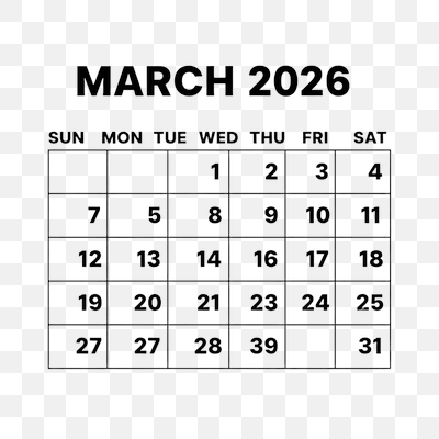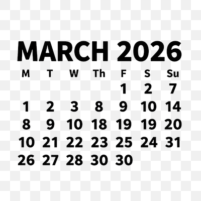 graphicsSimple Black and White Calendar for March 2026