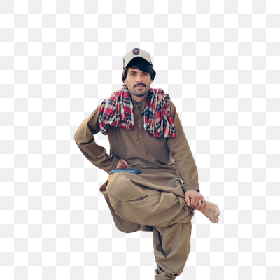 graphicsPortrait of a Man in Traditional Brown Shalwar Kameez with Plaid Scarf