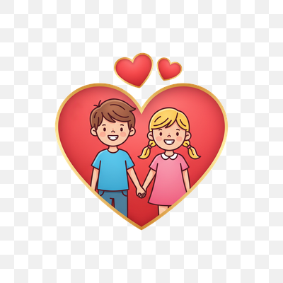 Sweet Young Love: Cartoon Boy and Girl in a Heart